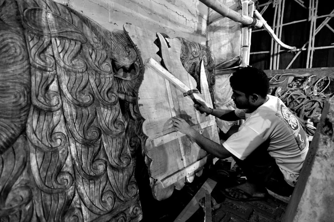 কাঠ খোদাই হল চিত্র ও ভাস্কর্যের এমন এক মাধ্যম যা শিল্পীর ভাব প্রকাশের তির্যক হাতিয়ার। কাঠের শরীর জুড়ে আঘাত বুনে বুনে রূপ আবিস্কারের ইচ্ছা পদ্ধতি।